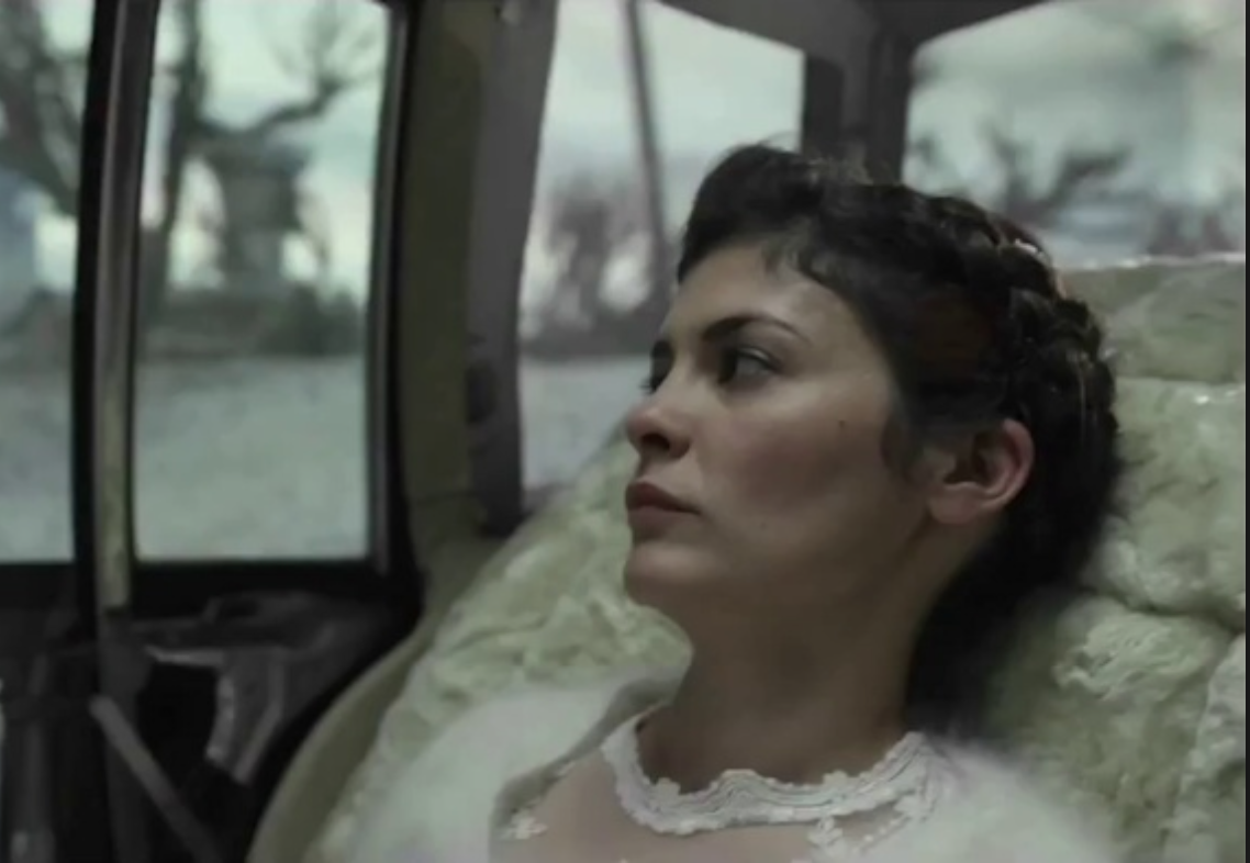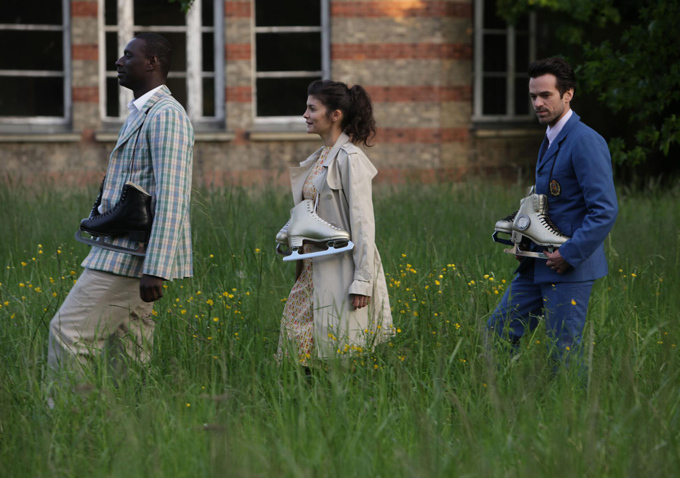 Don’t get me wrong. The first bit of Mood Indigo delivers the sort of shaken-up snow globe that is Gondry’s forte. As Colin, a Parisian man of means, Duris sweeps us off our feet with his twinkling eyes and twinkle toes. (He is a former dancer, after all.) He lives in a lavish rooftop apartment surrounded by his cook and lawyer Nicholas (Omar Sy), his pianococktail invention (it translates any piece of music into an alcohol concoction), his gaggle of neo-philosophers, and his swoony collection of jazz records. He meets Chloe (Tautou), “a girl like a Duke Ellington tune,” and their courtship is the stuff of snow globe jazz records (if such stuff exists outside of Gondry and Vian’s imagination): ice rink outings, dances that defy the laws of physics, a ride in a cloud-shaped aircraft. Even their wedding ceremony boasts a wacky pastiche of visual effects, including a split screen with sunshine on one side and a storm on the other. It’s all helped along by the fact that Tautou’s bright, brown-eyed beauty mirrors Duris’s own.