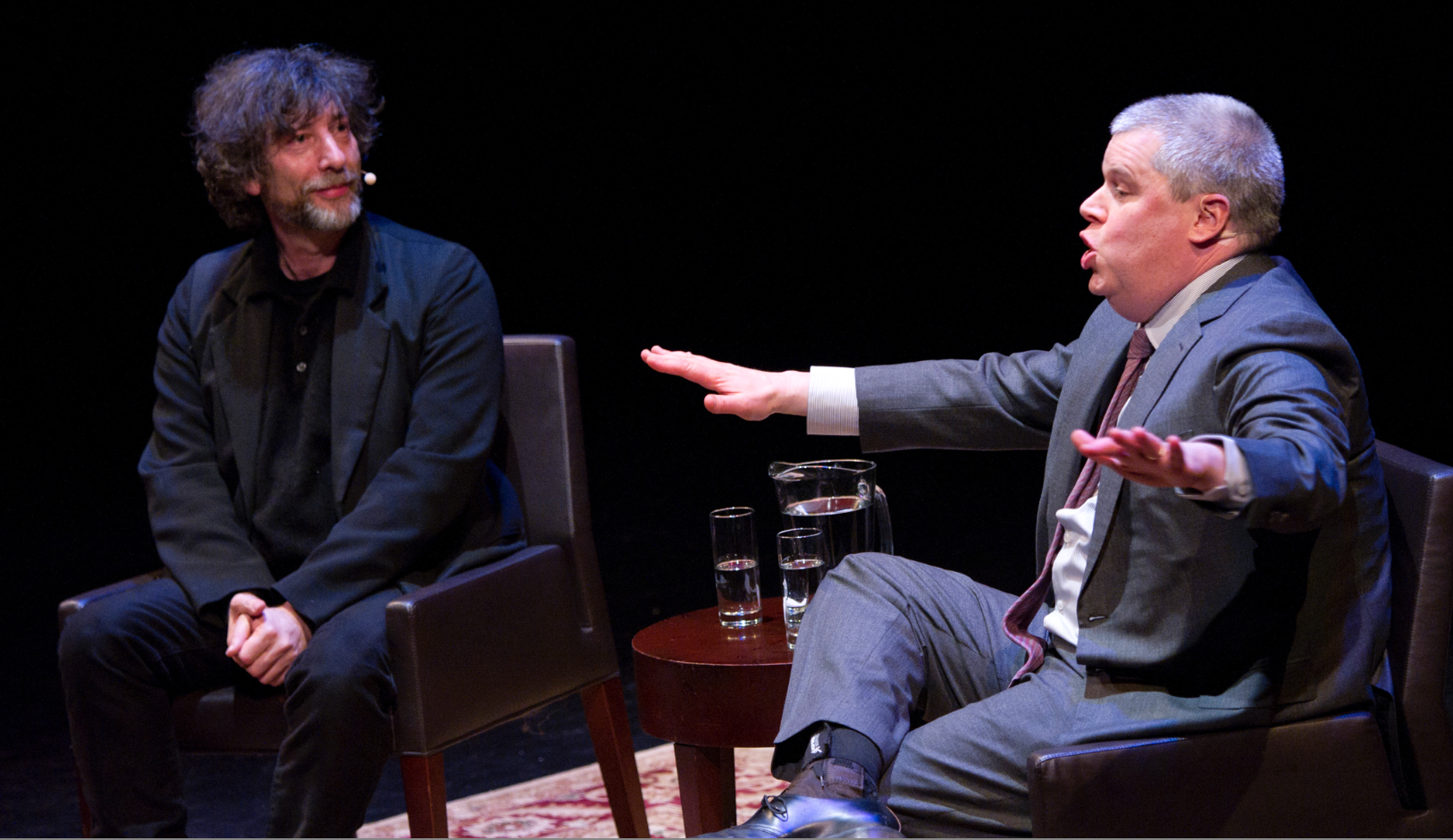 They promised swordfights in their conversation but what we got was almost as good. At Tuesday night’s “En Garde! Gaiman and Handler,” authors, screenwriters, and general bon vivants Neil Gaiman and Daniel Handler (aka Lemony Snicket) convened at the Brooklyn Academy of Music’s Howard Gilman Opera House for a ninety-minute dialogue covering everything from the existence of magic to writing advice. Most notably, the friends and occasional collaborators also addressed Handler’s racist joke at last fall’s National Book Awards. It was a lively evening.