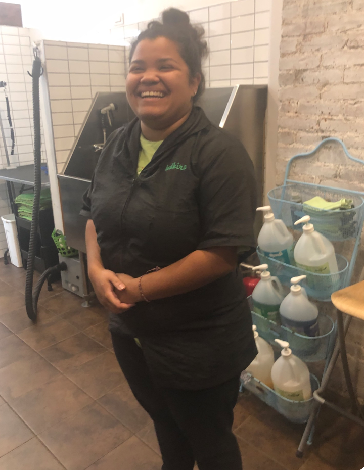Desperate, I walked up and down the block, even returned to the studio though I knew I’d been wearing the bag when I left. The manager began to comb the area with me, her grandbaby cooing soothingly in her carrier as if she knew I needed solace. Finally a woman burst out of the closed storefront of BFF Animal Wash and called out: “Are you Liza Rozman?” I nodded–close enough!– and she ushered us inside to hand me the purse. “Oh, I’m so glad it’s you!” the woman said, grasping my hand and introducing herself as Indira. “I found this on the bench and when I saw you walking around I had a feeling it was yours. Your phone number’s not in your purse, mami.”